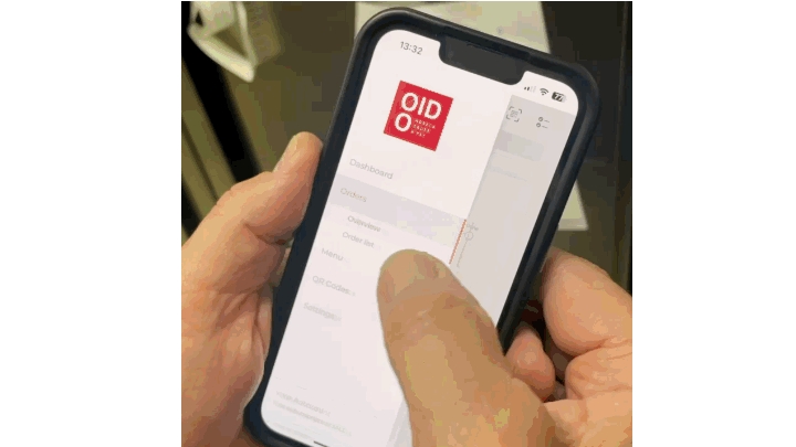You can retrieve and check the order using the QR code on the customer's receipt. Click on the scan symbol in the navigation bar. OIDO will first request permission to use the camera. Access is technically necessary for the Scan function. Point the device camera at the QR code on your customer's receipt screen. The associated order is retrieved for verification.